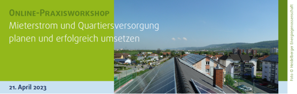 Das Potenzial für die Nutzung von grünem Strom vom Dach oder dem Keller in Mietshäusern und Wohnquartieren ist enorm. Dezentrale Energielösungen mit Wärme und Strom, Elektrolademöglichkeiten und die Integration von Speichern werden stärker nachgefragt. Welche Chancen dies eröffnet und wie Sie Mieterstromprojekte planen und umsetzen, thematisiert der Praxisworkshop mit den "Mieterstrom-Pionieren" der Heidelberger Energiegenossenschaft.